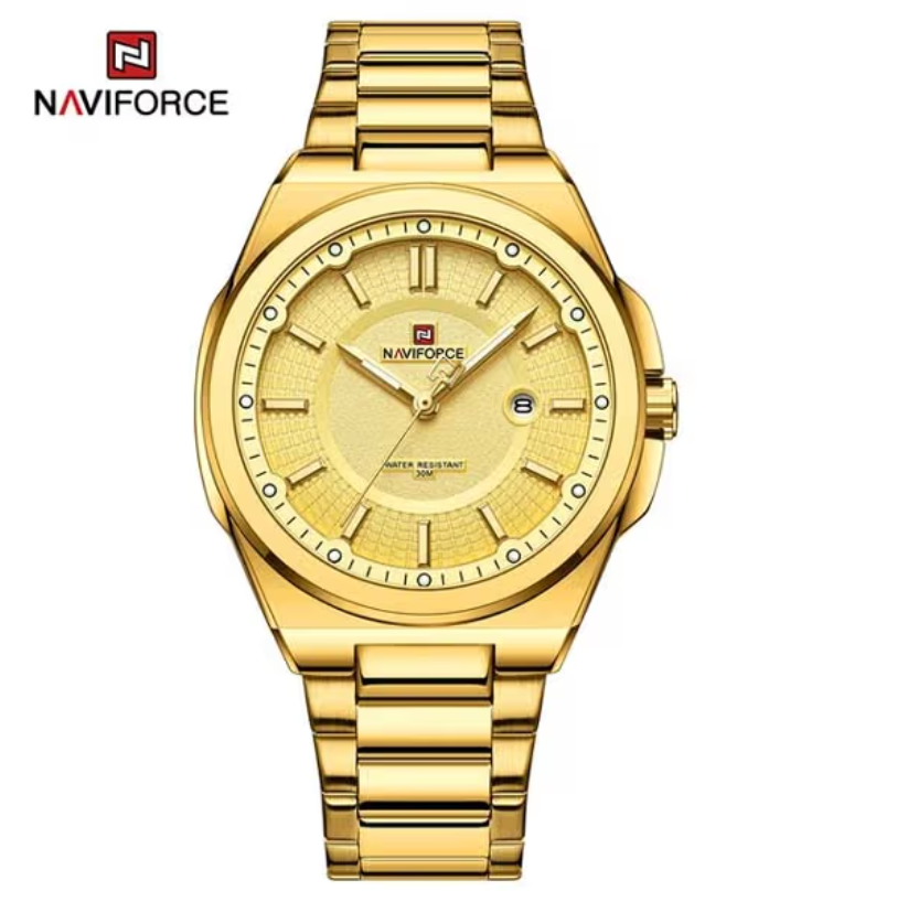 Naviforce 9212 Stainless Steel Luminous Men’s Watch (Gold)